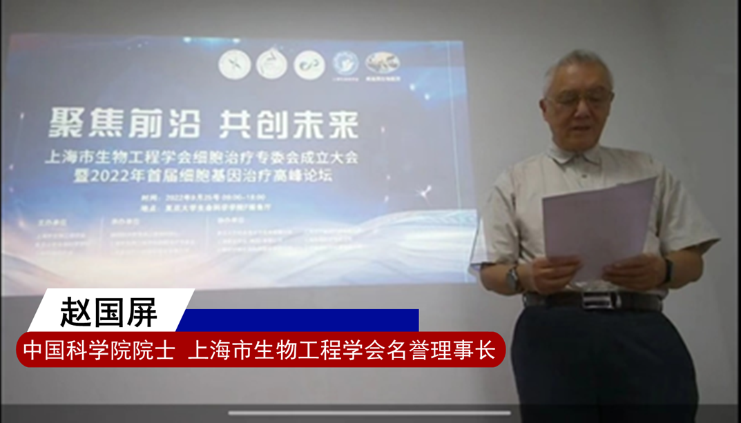 中国科学院院士赵国屏作视频致辞,表示作为上海市生物工程学会的名誉理事长对专委会的成立表示由衷的祝贺!赵院士认为上海市生物工程学会细胞治疗委员会旨在凝聚上海与长三角地区细胞治疗领域的产学研专业人才,加强学术交流,促进跨界互动、加快科研成果转化与应用,推动细胞治疗领域科技与产业高质量高水平发展,的确是当前形势之需;专委会的成立,有利于加强监管部门、科研转化机构、行业企业之间的深度合作与交流,制定并完善相关产品的质量评估体系与行业标准,支撑临床应用的稳妥推进,这正是当前发展之要。通过专委会的组织和协调,将有效规范细胞治疗领域的人才培养方案、提升相关专门人才的培养和储备能力,是促进整个细胞基因治疗行业快速高效、健康有序、可持续发展的长远之策。并特别寄希望专委会能不忘服务人民健康的初心,切实履行职责,发挥引领示范作用,为促进细胞基因治疗行业的基础研究、应用开发、临床转化的不断突破与可持续发展,作出切实的贡献。