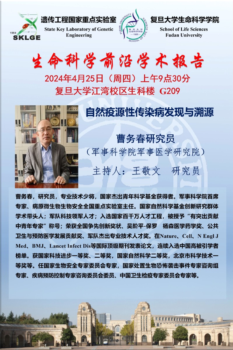 生命科学前沿学术报告-2024年4月25日(周四)曹务春 研究员(军事科学院军事医学研究院),生科院G209