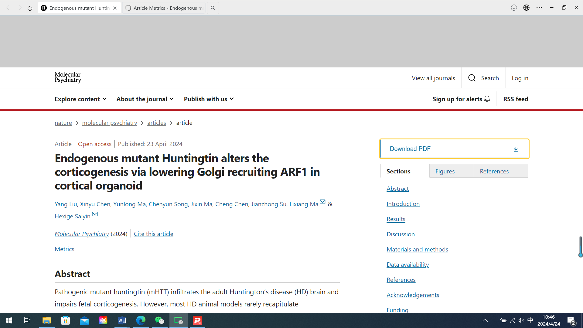 2024年4月23日,复旦大学基础医学院马丽香老师与生命科学学院赛音贺西格老师联合课题组在应用脑类器官研究HD疾病新的机制方面取得了新进展,相关研究成果于以“Endogenous mutant Huntingtin alters the corticogenesis via lowering Golgi recruiting ARF1 in cortical organoid”为题在线发表在《分子精神病学》(Molecular Psychiatry)杂志上。