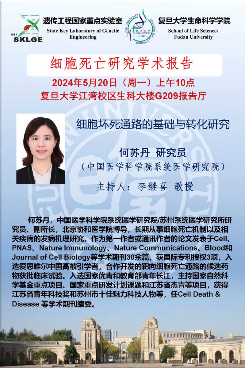 学术报告-2024年5月20日(周一) , 何苏丹 研究员(中国医学科学院系统医学研究院),生科院G209
