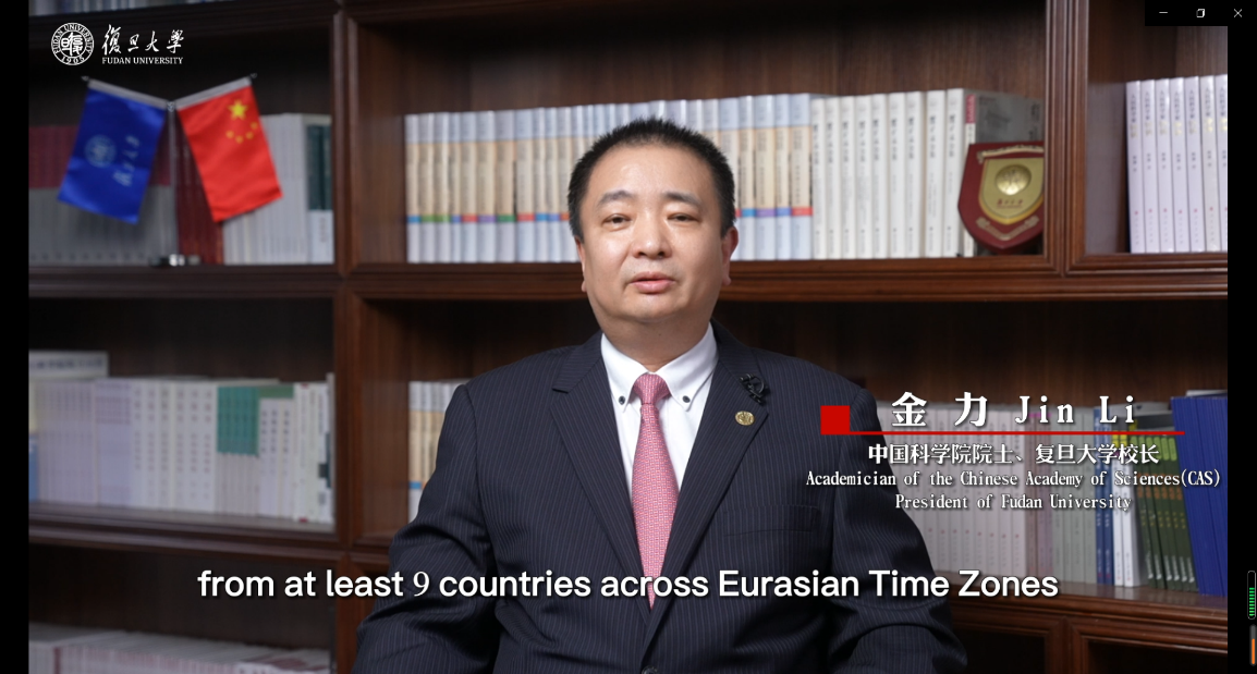 图为复旦大学校长金力致开幕辞