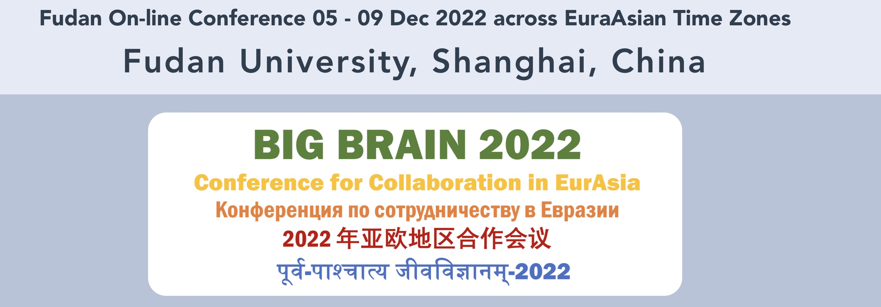 2022年12月5日至9日, 复旦大学“BIG BRAIN 2022年亚欧地区合作会议”在“云端”成功召开。BIG BRAIN 2022是继2018年德国克雷菲尔德/杜塞尔多夫(Krefeld/Duesseldorf)、2019年莫斯科国立大学罗蒙诺索夫分校(Lomonosov Moscow State University)后,首次由中国高校独立主办。会议汇集了来自中、德、俄、印、美、挪威、瑞典、塞尔维亚、哈萨克斯坦等“跨越9个国家、8个时区”的60余名参会者,秉承“同一个大陆,同一个使命——促健康欧亚”(One Continent, One Mission - Health in EurAsia)的理念,从生物学、整合系统科学、方法学等多学科领域,进行成果交流和思想碰撞,旨在促进欧亚大陆未来长期学术交流与科研合作,为构建欧亚大陆和全球人类健康的共同事业贡献力量。会议由复旦大学进化生物学中心主办,上海遗传学会、上海人类学学会、欧亚人类学国际联合实验室和现代人类学教育部重点实验室共同协办。