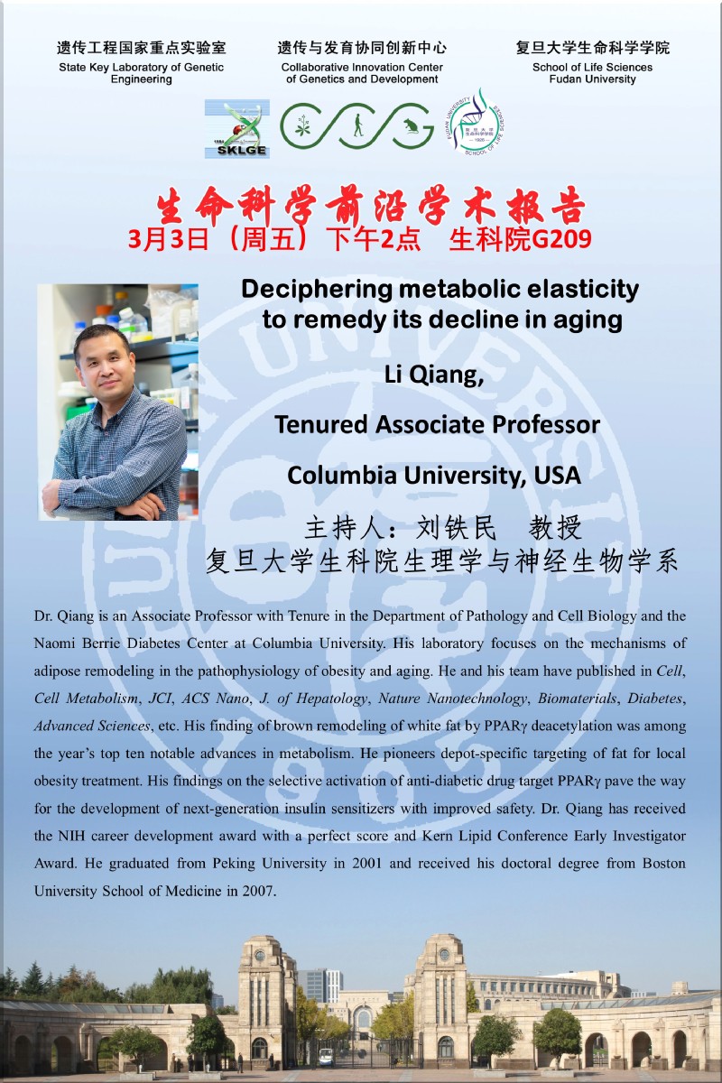 生命科学前沿学术报告-2023-3-3(周五)下午14点,强力 教授(哥伦比亚大学)
