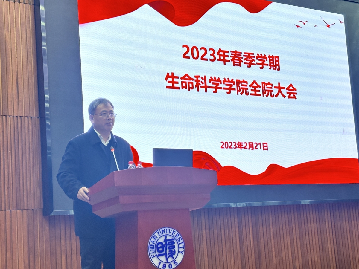 生命科学学院2023年春季全院大会于2月21日(周二)下午,在复旦大学江湾校区生科楼F区报告厅举行,谋划新发展,开启新征程。会议由陈浩明书记主持,会议议题是学院党政领导班子成员布置今年学院重点工作。