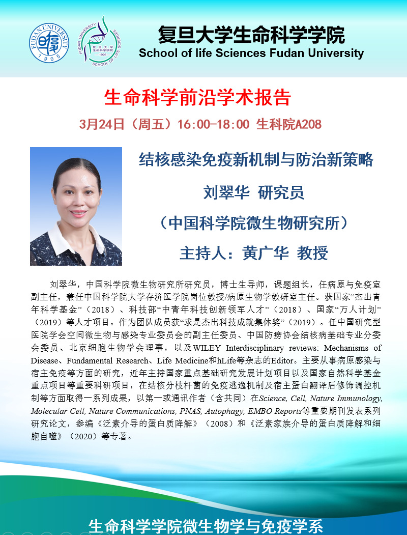 生命科学前沿学术报告-2022-3-24(周五)下午16:00,刘翠华 研究员(中科院微生物研究所)