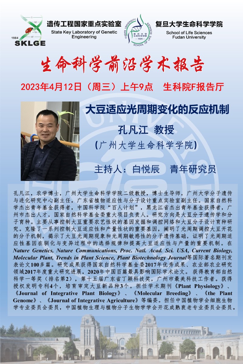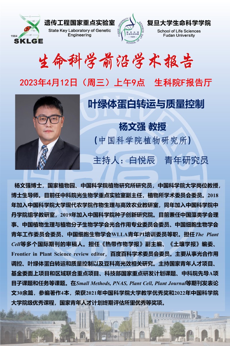 3场生命科学前沿学术报告-2022-4-12(周三)上午9:00,杨文强 教授(中科院植物所)、孔凡江 教授(广州大学生科院)、李继刚 教授(中国农大生物学院)
