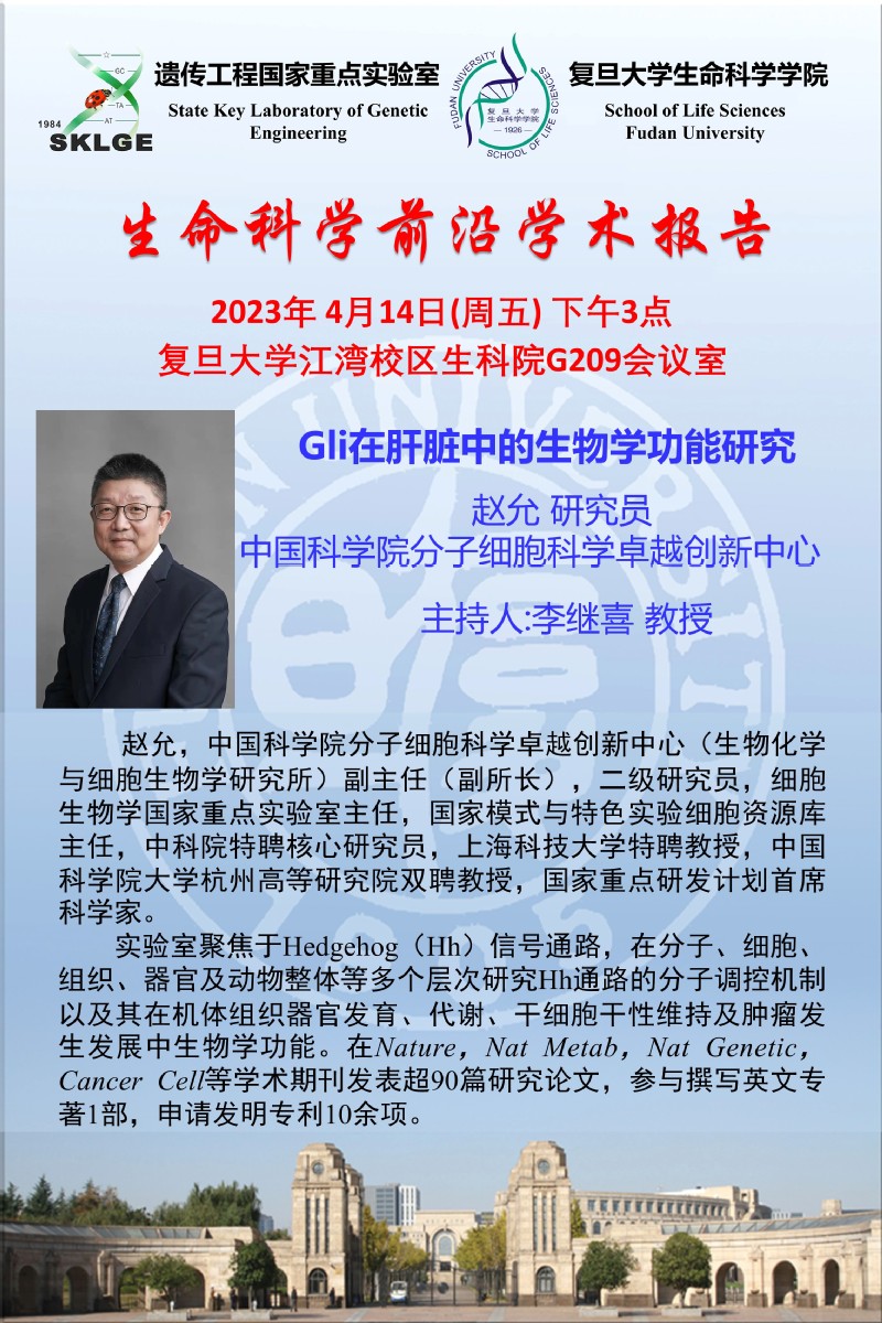 生命科学前沿学术报告-2023-4-14(周五)下午15:00,赵允 研究员(中科院分子细胞科学卓越创新中心)