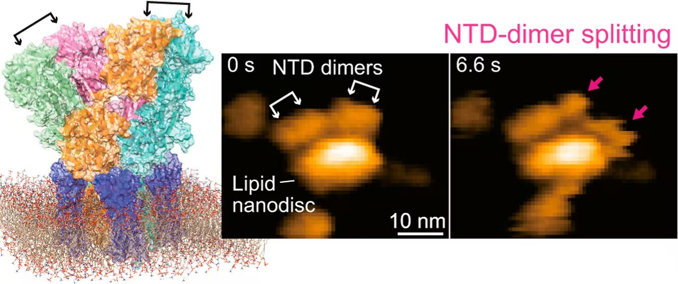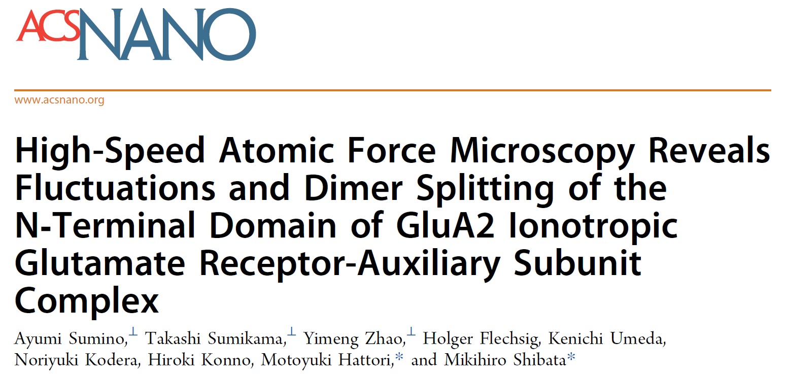 2024年8月24日,复旦大学服部素之团队和日本金泽大学的Mikihiro Shibata团队联合在ACS Nano在线发表题为High-Speed Atomic Force Microscopy Reveals Fluctuations and Dimer Splitting of the N Terminal Domain of GluA2 Ionotropic Glutamate Receptor-Auxiliary Subunit Complex的文章。
