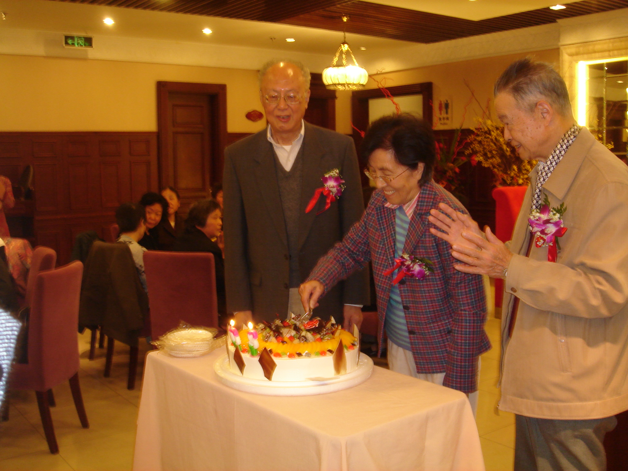今年的祝寿活动由叶敬仲书记主持,他先宣读了今年寿星的名单,然后向各位寿星献花,并领唱了《生日快乐》歌,祝愿各位老师福如东海,寿比南山。在一片欢快而诚挚的祝福歌声中,老师们一起拍手祝贺,相机的镁光灯也在不断闪烁,纷纷记录下这美好的瞬间。寿星们更是开心地合不拢嘴,一起吹蜡烛,切蛋糕,每个人的脸上都洋溢着发自内心的笑容。