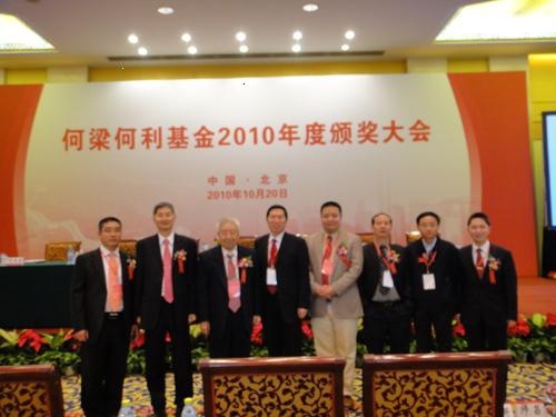 何梁何利基金2010年度颁奖大会于10月20日在北京钓鱼台国宾馆隆重举行。中共中央政治局委员、国务委员刘延东,全国人大常委会副委员长、中科院院长路甬祥,全国政协副主席、科技部部长万钢,全国政协副主席何厚铧等领导出席颁奖大会。