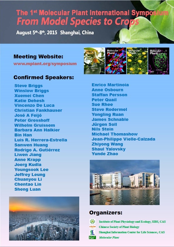 为分享当今植物生物学研究的最新成果和进展,促进国内外植物生物学科研工作者之间的交流与合作,首届“分子植物”国际研讨会:从模式植物到作物将于2015年8月5日-8日在上海举行。会议将邀请国内外有突出成就的专家及优秀中青年学者进行学术报告并开展学术交流活动,诚挚邀请国内外同行参加本次国际研讨会。