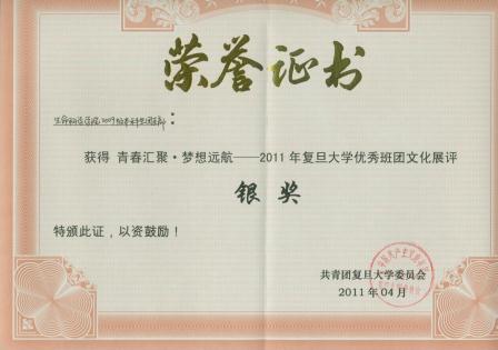 2011年4月26日晚6点30分, “青春汇聚,梦想远航”----2011年复旦大学第六届优秀班团文化展评决赛在吴文政报告厅隆重举行。