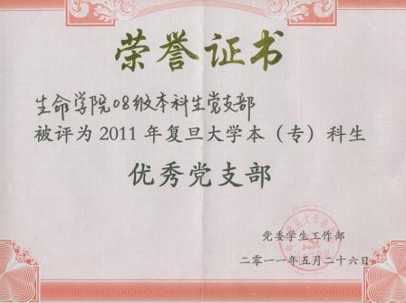 我院08级本科生党支部被评为2011年复旦大学本科生优秀党支部