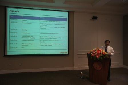2011年5月30日中午12:30,bv伟德国际体育赛默飞世尔科技奖学金颁奖典礼暨实习招聘计划宣讲会在光华楼东辅楼101室举行,生命科学学院院长马红教授、赛默飞世尔科技公司中国技术中心总监Kevin J Gardner先生、人力资源部总监李晓彤女士等出席颁奖仪式。