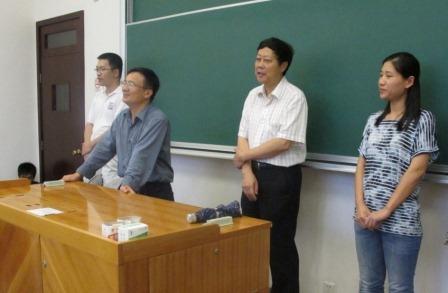 8月25日下午,生命科学学院马红院长、党委书记叶敬仲老师、导师吴晓晖、徐颖老师等在院学生工作首要负责人蒋蕾老师、学工组长钟妮老师、分团委书记郝珂威老师以及团学联主席团的陪同下,冒雨前往光华楼西辅楼203教室,慰问正在进行军歌比赛排练的2010级学生、辅导员朱培涛老师及两位教官,并送上了学院的慰问品。