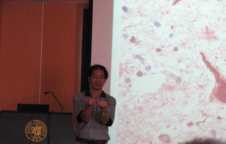 邓汉湘教授的学术报告会于9月15日上午10点,在平房2118会议室举行,此次报告会他以《细胞内高钙和蛋白质降解障碍与神经退行性疾病》为题,讲述了他在2010及2011年发表在Nature,Nature Genetics的工作。他生动而具体地阐述了ubiquilin 2突变导致蛋白质降解途径缺陷以及异常蛋白质沉积,从而导致肌萎缩性脊髓侧索硬化病的发生发展机制,以及TRPV4基因突变引发的钙离子通道异常导致神经退行性疾病。