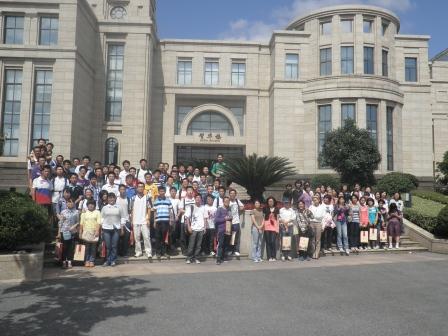 之后由生命学院党委副书记蒋蕾老师、分团委书记郝珂威老师和团学联的学生骨干们一起组织了全体同学乘车前往复旦大学江湾新校区,并分组游览了新校区。一路上同学们不仅基本了解了江湾新校区的概况,更在有说有笑的融洽氛围中促进了有着共同兴趣和志向的同学们间的交流。在江湾食堂午餐后,同学们在教学楼前留下合影作为此次活动的纪念。