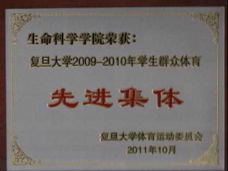 热烈祝贺我院2008级生命科学班获得复旦大学2011年度学生优秀集体标兵,2009级硕士班获得复旦大学2011年度学生优秀集体。我院获得复旦大学2009-2010年度学生群众体育优秀集体。
