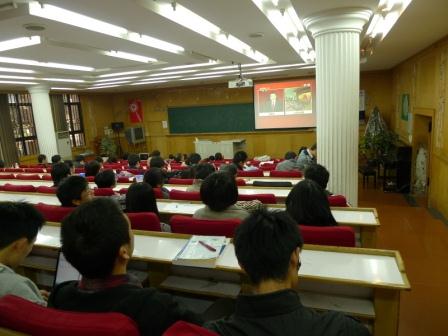中国共产党第十八次全国代表大会于11月8日上午开幕,生命科学学院师生对此密切关注。上午8:30,学院在立人生物楼107室组织党员集体观看开幕式直播及中央电视台相关评论节目,部分因课程无法观看的党员将在晚上集体观看开幕式录像。而许多党外的师生也打开电脑,自行观看了开幕式的网络直播。