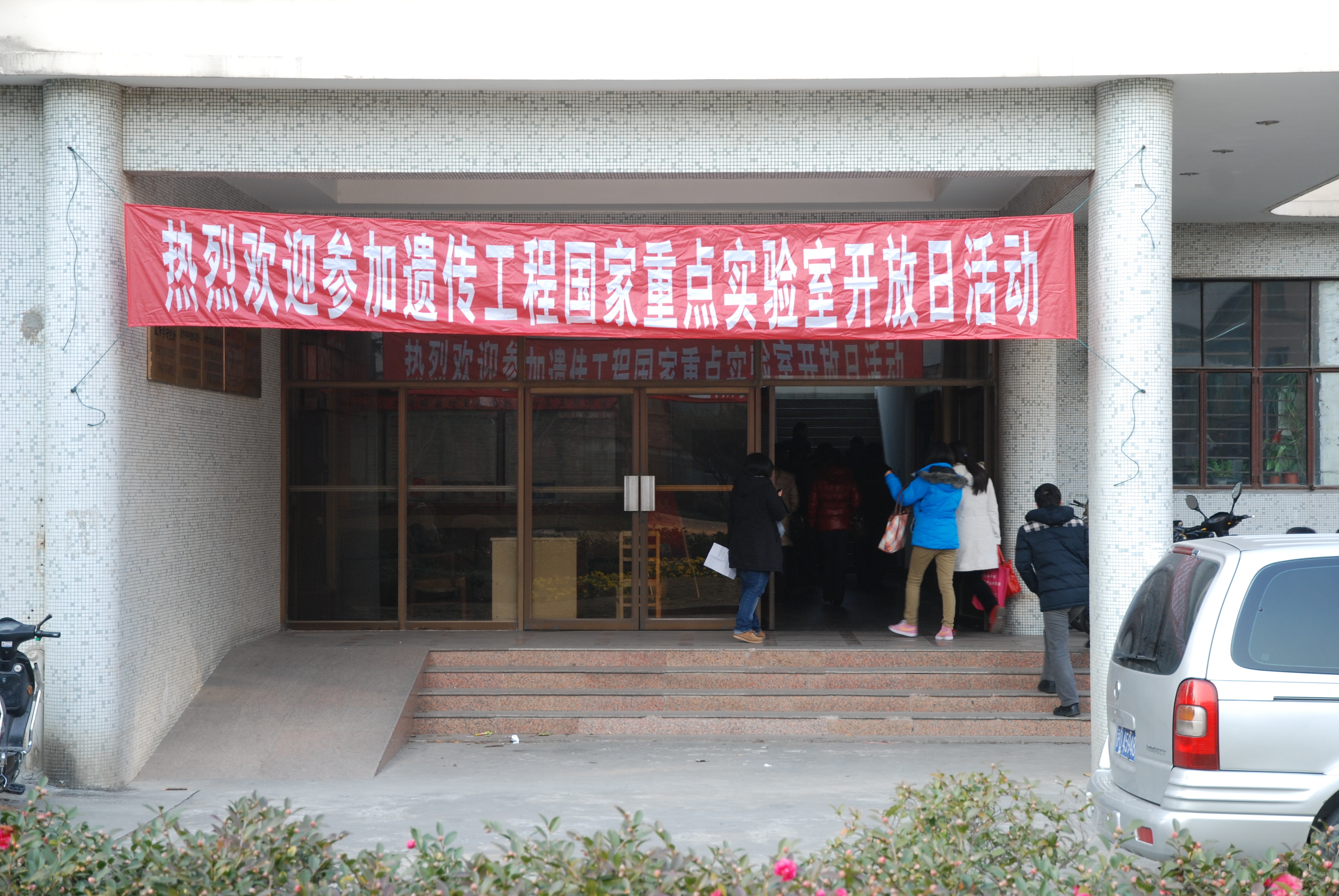 2012年12月24日下午,复旦大学遗传工程国家重点实验室在逸夫楼报告厅、遗传楼和逸夫科技楼举办2012年度遗传工程国家重点实验室开放日活动,接待了来自复旦大学二附中等杨浦区各中学的代表教师和本校生命科学学院的部分低年级本科生50余人。开放日活动首先由国家重点实验室副主任卢大儒老师对遗传工程国家重点实验室的总体情况、历史沿革、发展现状和未来规划进行了详细的介绍。随后与会人员来到报告厅外的展板区,对重点实验室各课题组的负责人、研究方向和主要成果等进行了大致的了解。最后在重点实验室相关老师的引领下,与会者先后参观了遗传工程国家重点实验室的大型仪器平台、模式生物斑马鱼平台以及发育所的荧光小鼠动物房,在参观国重室大型仪器平台时,蒋德科老师进行了耐心细致的介绍,并认真回答了各位老师和同学的提问。