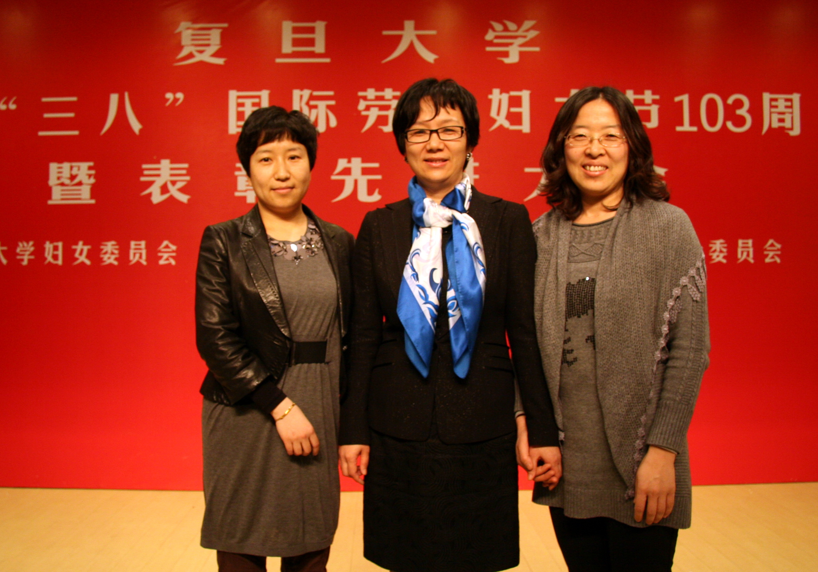 2013年3月7日,复旦大学纪念“三八”国际劳动妇女节103周年暨表彰先进大会在光华楼举行。大会颁发了获得2010-2011年度上海市、市教育系统“巾帼创新奖”、“巾帼文明岗”及2011-2012年度复旦大学“‘三八’红旗手”(集体)、“优秀妇女干部”(组织)等先进奖项的个人和团队。