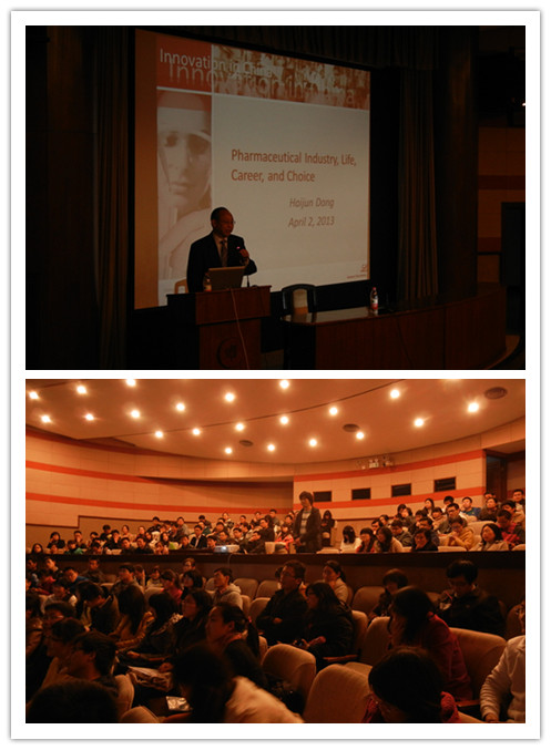 2013年4月2日晚,在老逸夫楼一楼报告厅,生命科学学院邀请礼来(中国)研发首席运营官董海军博士为同学们讲授医药外企研发战略及职业生涯规划。董海军博士是华盛顿大学化学博士、中欧国际工商学院MBA,同时还是南京工业大学的“特聘教授”,在新药研发相关领域具有丰富的工作经验。