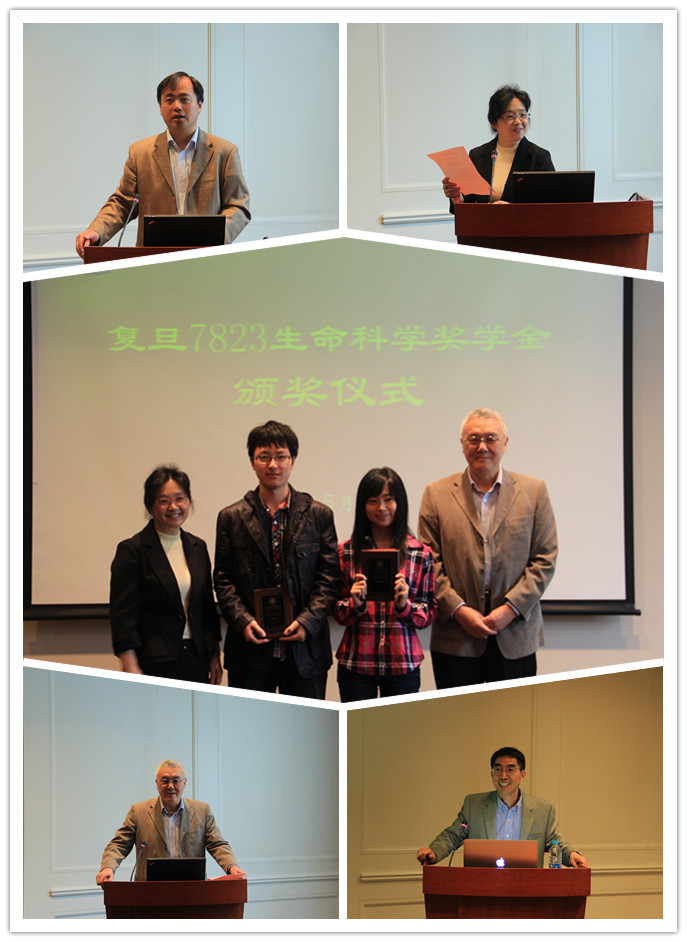 2013年5月10日上午,生命科学学院在光华楼东辅楼101会议室举行2012年度复旦7823生命科学奖学金颁奖仪式。7823生命科学奖学金由生命学院1978级微生物系校友共同筹资设立,旨在推动复旦大学教育事业的发展,帮助优秀学生顺利完成学业,并鼓励学生参与课余科研创新活动。该项奖学金自2008年设立至今,已累计奖励本科生18名,本届共有3名学生获奖。