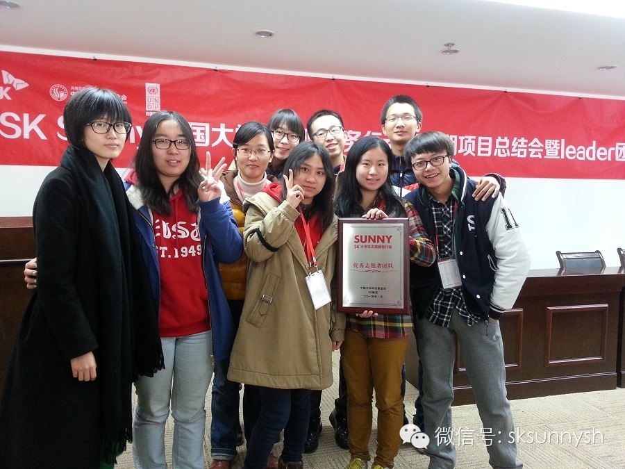 SK Sunny是由韩国SK集团发起、中国光华基金会支持的大学生志愿者活动。该活动通过联合中韩两国的优秀大学生自发开展社会实践活动,充分发挥大学生的优势,实现回报社会、创造价值的目的。该活动在中国共有包括北京、上海、深圳、四川等4个地区16所大学约600名大学生参加。学生自发组成共44支志愿者服务团队,利用课余时间进行公益活动。2013年,SK Sunny的受众进一步扩大。SK Sunny以优化的组织形式,利用大学生自身的特长,在弱势群体帮助、灾区重建、人文关怀等方面取得了很好的成绩。今年,上海Sunny志愿者项目共有来自复旦、交大和上外三所高校六支队伍参与其中。