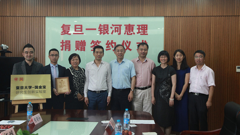 在胡力文先生和冯晓源教授共同签署了捐赠协议之后,冯晓源教授向胡力文先生颁发捐赠纪念牌。胡力文先生与陈浩明书记为复旦大学国金宝研究生创新实验室共同揭牌,期待着取得更多的创新成果回馈社会。