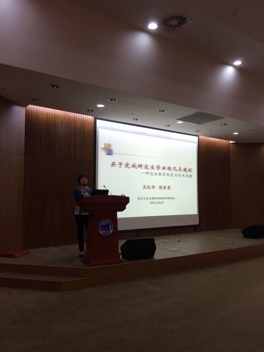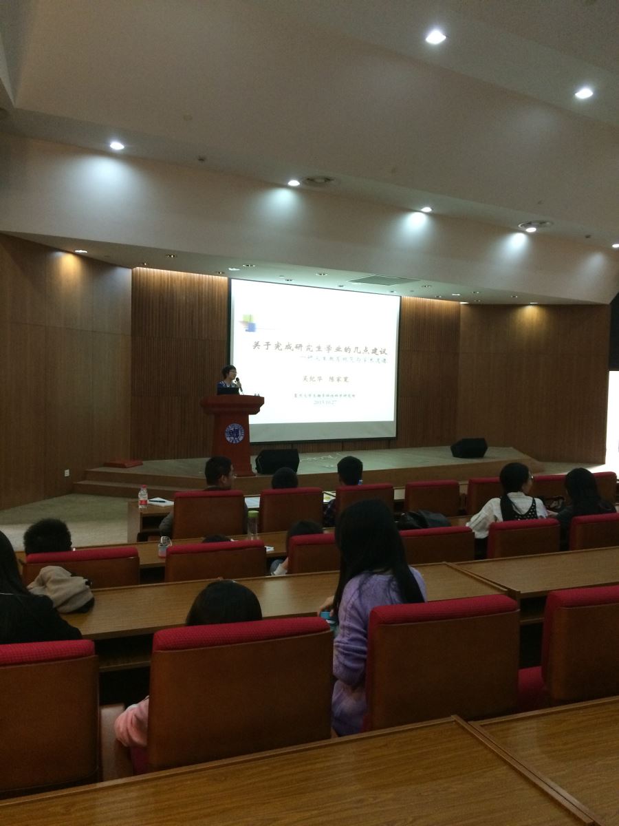 2015年10月27日下午, 生命科学学院一年一度的研究生学风教育专题讲座在江湾校区生科大楼F区会议厅如期举行。生命科学学院吴纪华教授应邀向2015级新生作题为“关于完成研究生学业的几点建议”的讲座。