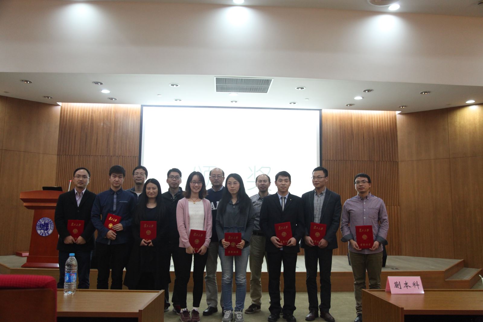 经过一天的学术报告,评委老师现场对报告人的课题创新性、应用前景、表述逻辑性、提问回答等多个方面进行打分。郝亚娟、景宏伟和肖敏等三位同学凭借高水平的科研成果及精彩的报告荣获本届复旦大学博士生论坛之生命科学论坛优秀论文一等奖,其他同学获得二等奖。最后,由评委老师向获奖同学颁奖并合影留念。