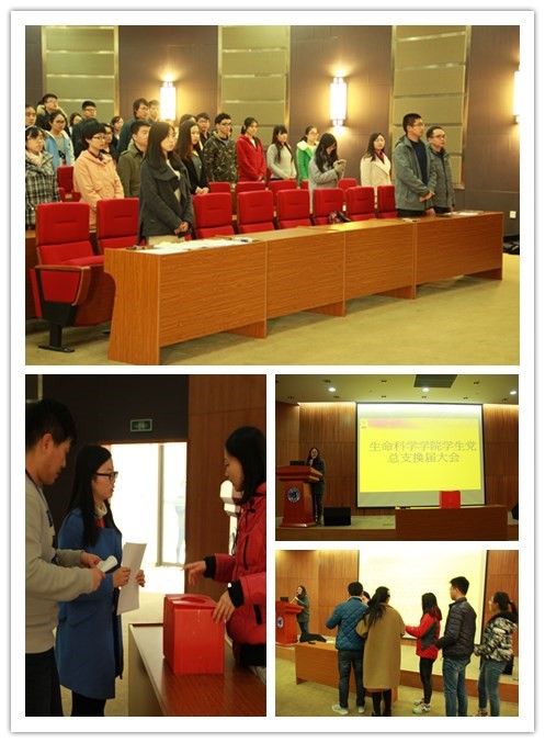 生命科学学院学生党总支成立于2007年,2011年进行过一次换届,现又已届满。按照《中国共产党章程》、《中国共产党基层组织选举工作暂行条例》、复旦大学《关于推进学生党总支建设的实施意见》等文件要求,经学院分党委批准,召开本次学生党员大会,进行换届选举工作。会议在庄严的国歌声中正式开始。