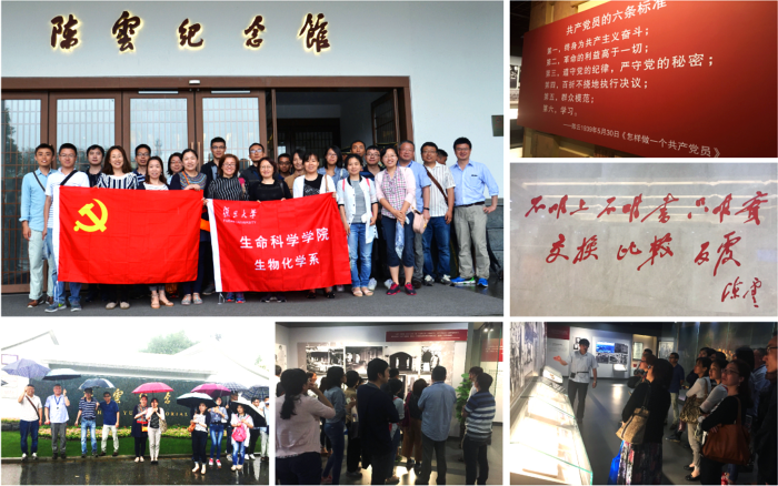 之后,生化系党群一行人前往青浦区练塘镇,参观了陈云故居暨青浦革命历史纪念馆。在讲解员的引领下瞻仰了陈云同志铜像、参观了陈云同志生平业绩馆以及文物馆,通过认真学习各展厅展出的图片、文献、实物等资料,深入了解了陈云同志波澜壮阔的一生以及其为中国革命和新中国建设所作出的伟大历史功绩。通过对陈云同志学习、工作、生活、思想作风的深入学习,更加坚定了同志们弘扬“不唯上、不唯书、只唯实”、尊重实践和调研、顾全大局、克己奉公的精神、以及立足岗位、即埋头苦干又开拓创新的决心和热情。同志们纷纷表示,要进一步学习和奉行“两学一做”要求,在自己的专业领域、在教学和科研上做出更大的成绩和贡献。