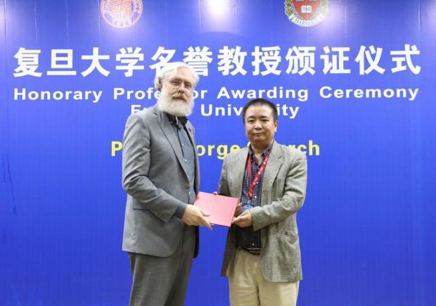 接下来金力校长代表复旦大学为George Church教授颁发“复旦大学名誉教授”聘任证书。颁证仪式过后,
