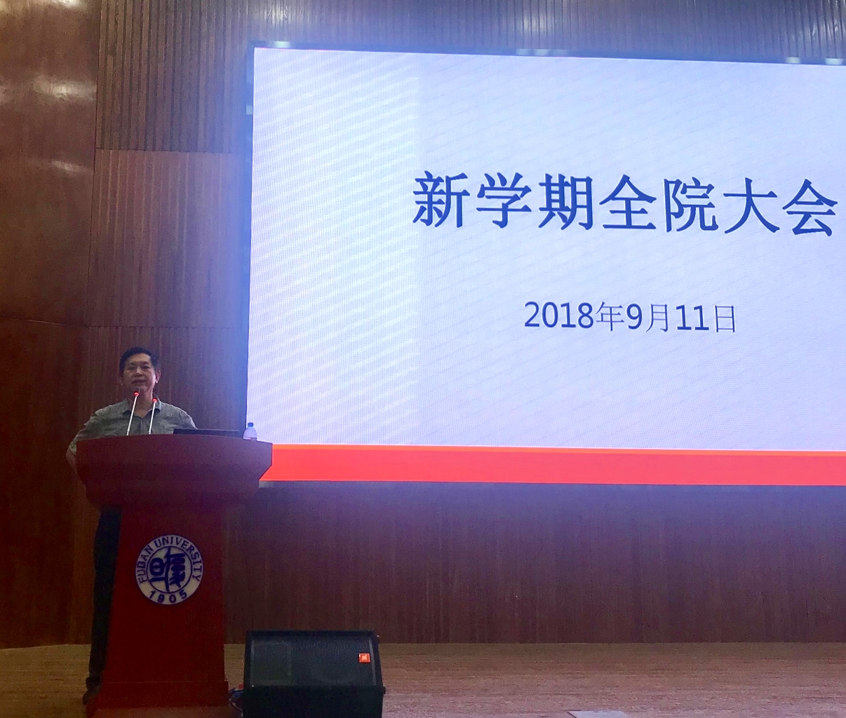 生命科学学院本科生教学评估迎评动员大会暨新学期全院大会于2018年9月11日(周二)下午15:00在复旦大学江湾校区生科楼F区报告厅举行,会议由陈浩明书记主持。