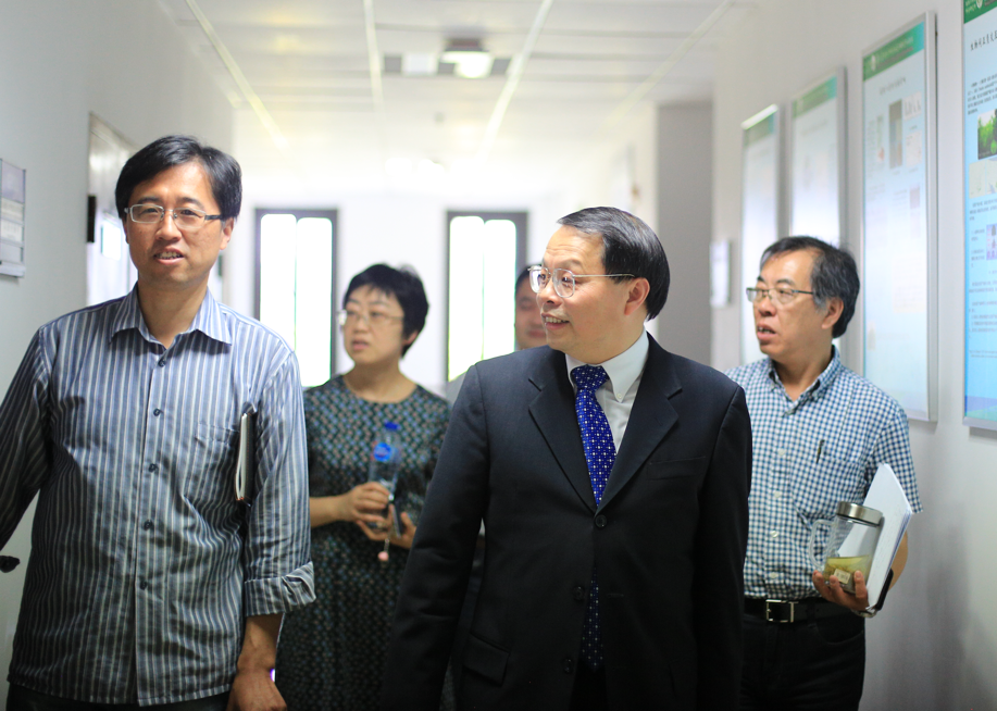 马志军教授带领刘建国院士参观生物多样性与生态工程教育部重点实验室