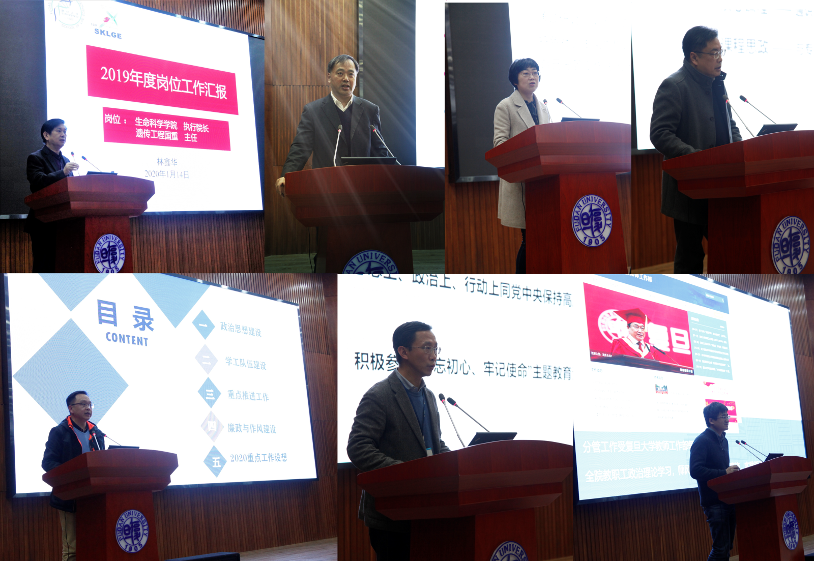 生命科学学院2019年终教职工大会于2020年1月14日(周二)下午14:30在复旦大学江湾校区生科楼F区报告厅举行,会议由丁澦副书记主持,会议议题包括学院党政领导班子成员做年终工作总结汇报述职述廉;对2019年学院的标杆实验室进行表彰;对院班子进行民主测评。