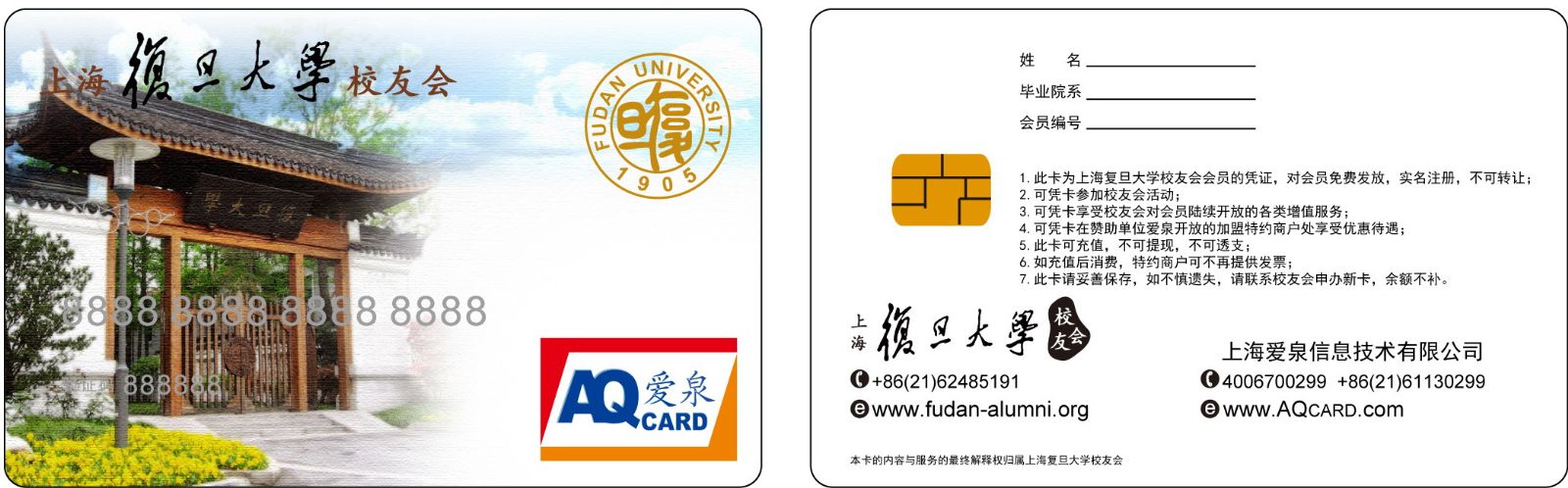 从今起,每一位会员都将得到一张上海复旦大学校友会特别设计定制的专属会员卡!