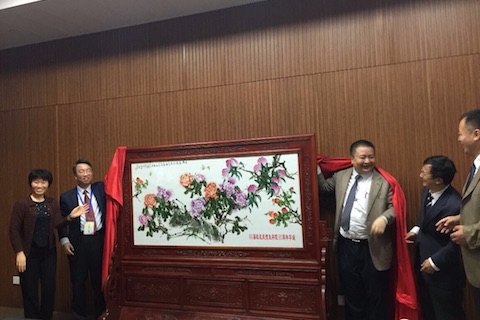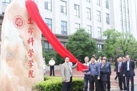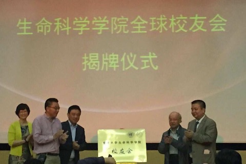 在全体与会人员的掌声中,复旦大学副校长金力,原生命科学学院院长苏德明,校友代表陈启宇、余国良,校外联处处长潘俊为“bv伟德国际体育校友会”揭牌。