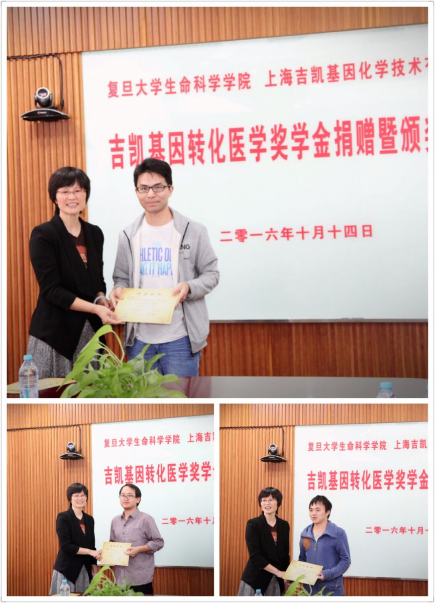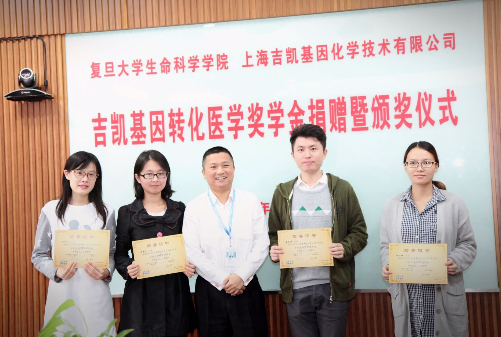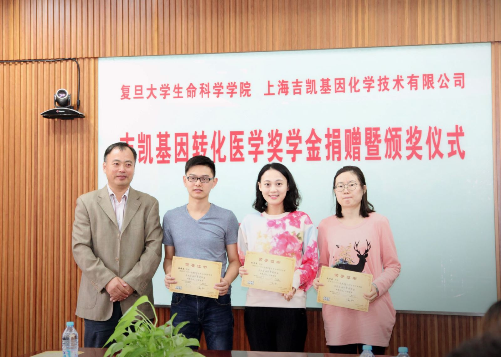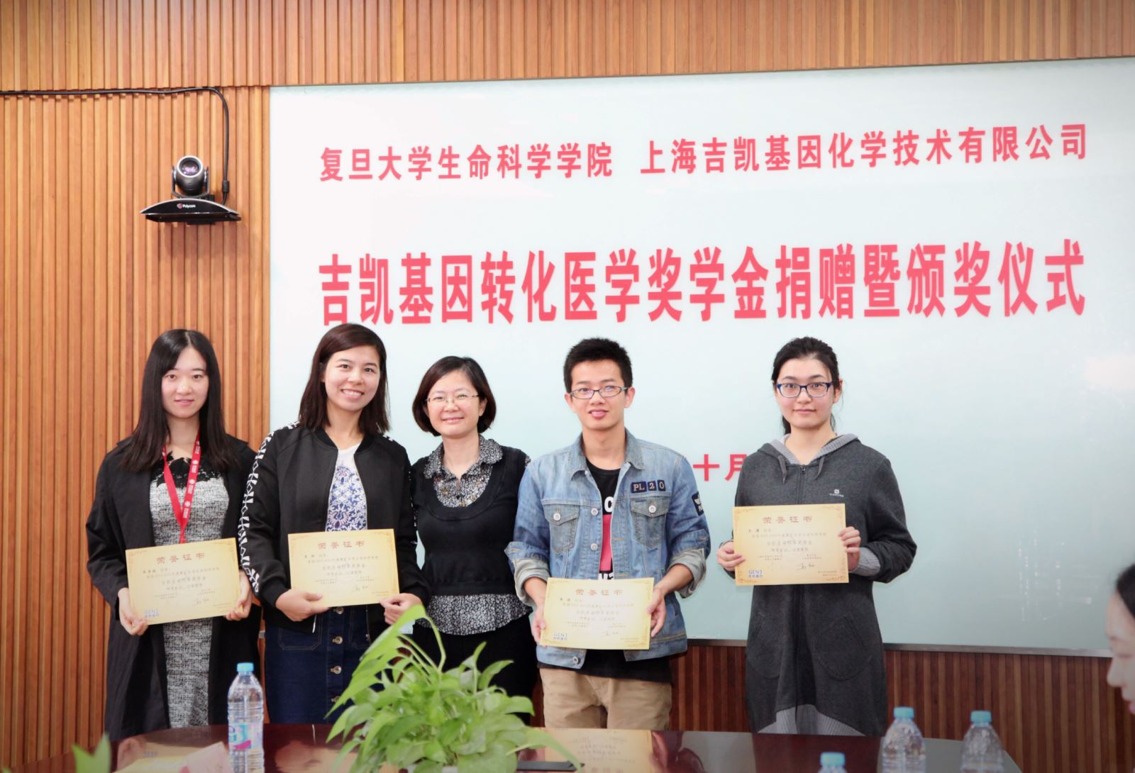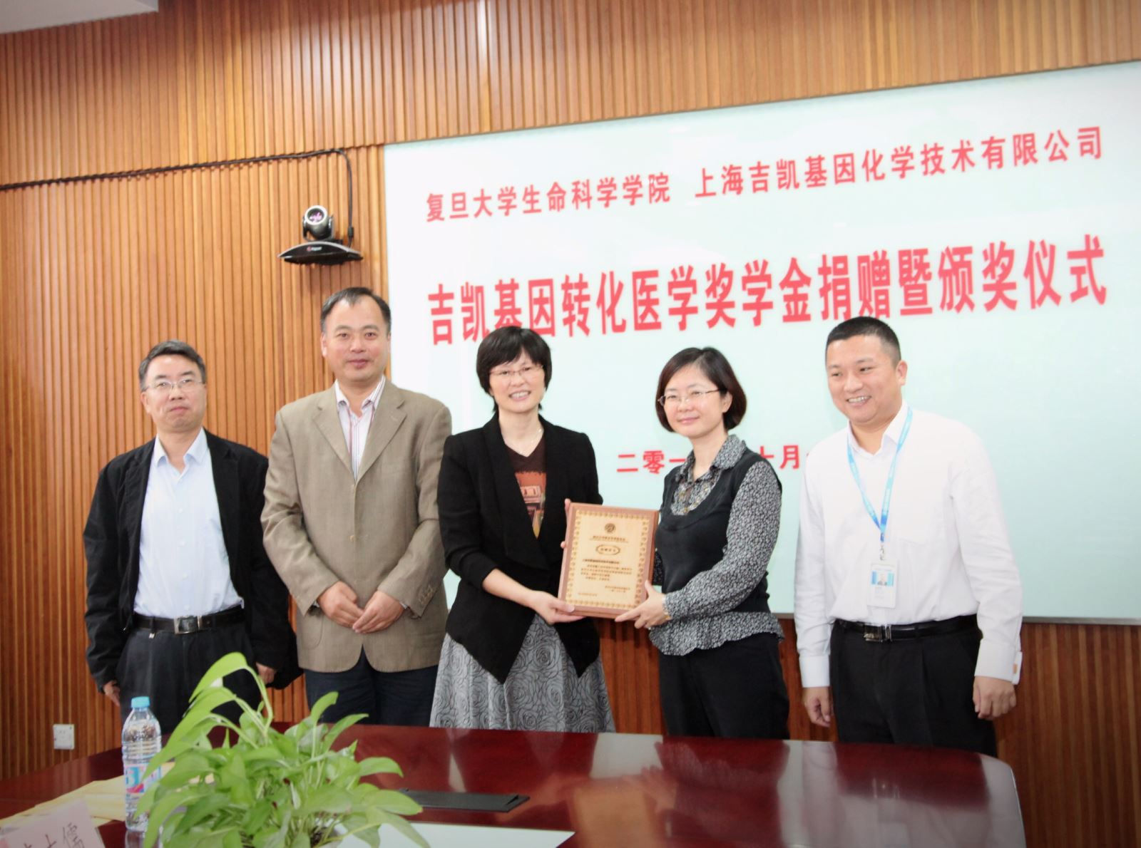 2016年10月14日,吉凯基因转化医学奖学金捐赠暨颁奖仪式在复旦大学生命科学院会议室隆重举行。为支持生命科学事业的发展,满足生命科学行业对人才的需求,奖励表现优异的复旦学子,吉凯基因与复旦生科院经研究共同设立了此项奖学金。这也是吉凯基因董事长曹跃琼女士作为复旦校友对母校和社会的真诚回报。