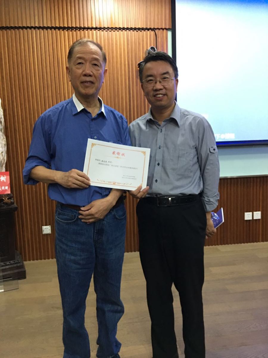 讲座结束,卢大儒教授授予徐定邦先生感谢状,感谢徐先生为生科院学生和校友带来如此精彩的讲座。