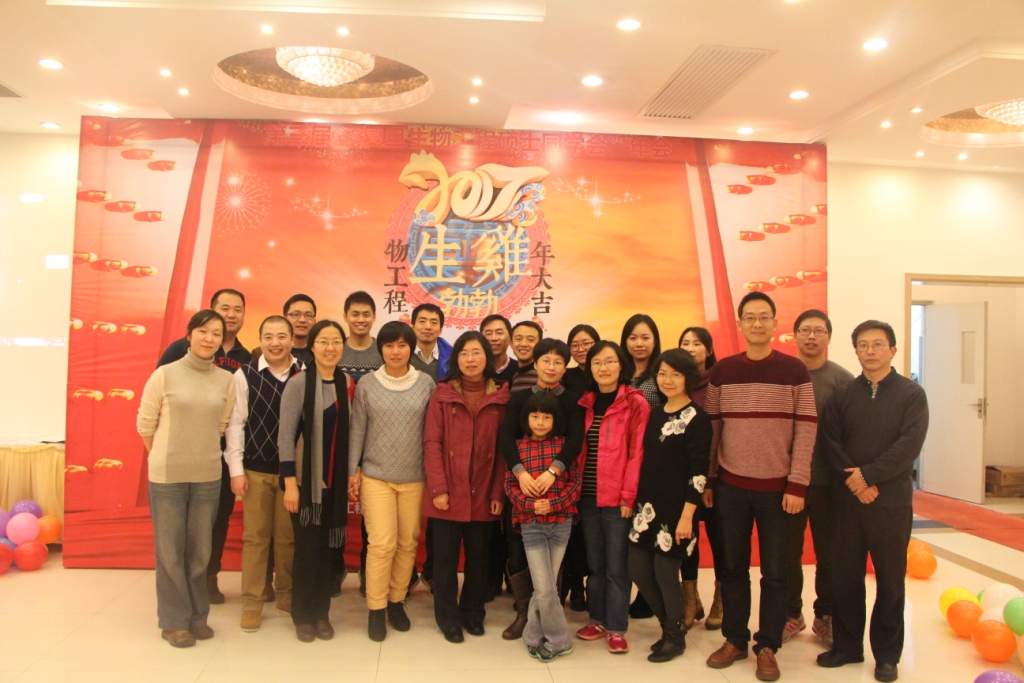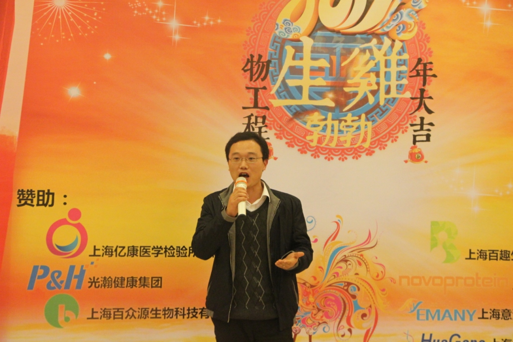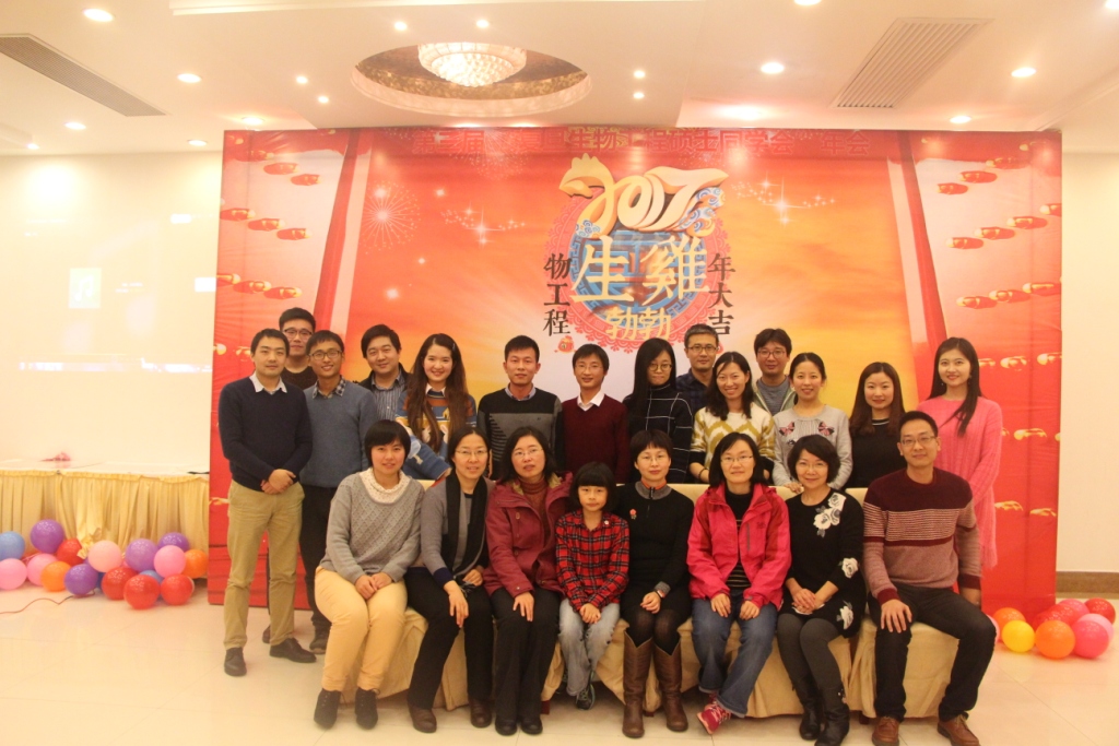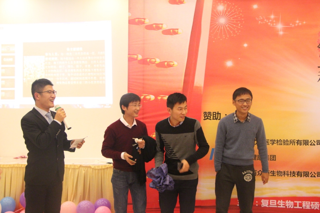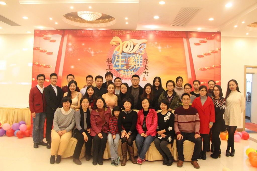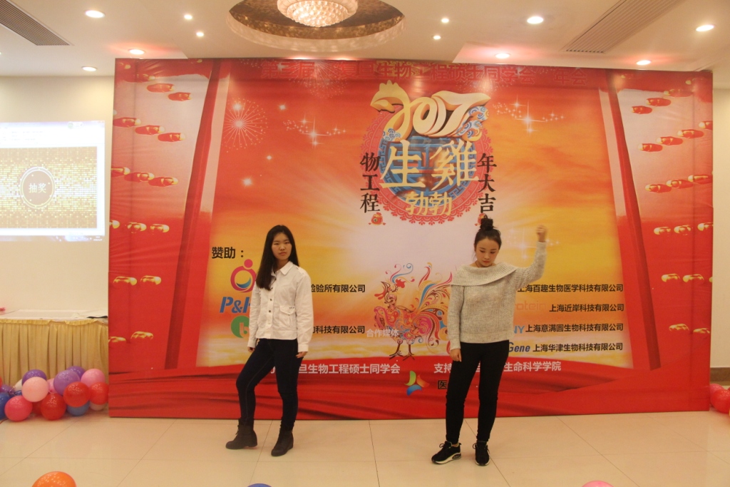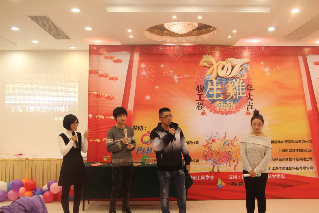 复旦科技处老师、复旦生科院老师、上海近岸科技有限公司、上海百众源生物科技有限公司、上海意满圆生物科技有限公司、上海华津生物科技有限公司各位嘉宾代表以及复旦生物工程硕士班2009级至2016级同学参加了此次年会和联欢晚宴,全体人员共同度过了一个难忘而欢乐的夜晚,师生之情永记于心,同窗情谊共同珍藏,新年“鸡”会共同开创!