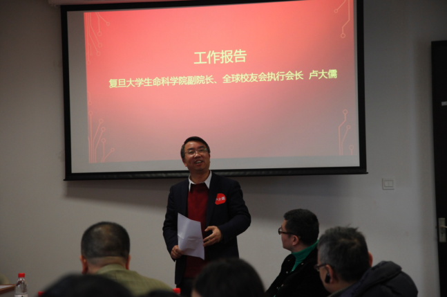 复旦大学生命科学院副院长、全球校友会执行会长卢大儒做校友工作报告,他表示校友会自成立半年以来,在学院领导的高度重视下积极开展各项校友工作,充分发挥桥梁和纽带作用,使校友间的联系日趋密切,受到越来越多校友的关注和充分肯定。具体工作包括:一、校友信息平台建设,包括学院网站“校友之窗”网页改版,新增新闻资讯和校友风采栏目,新闻资讯及时发布校友与学院互动的相关新闻及校友会重大新闻,校友风采栏目展示生科院杰出校友风采,按院士、学术大咖及商界精英将杰出校友分类,配以图片和文字宣传校友成就;校友信息数据库更新;开设全球校友会微信公众号,发布文章涉及学院重要新闻、校友新闻、讲座信息、校友活动、校友捐赠信息等,每篇文章被校友大面积转发,已成为展示学院及校友信息的重要窗口;二、开展特色校友活动,包括校友返校联谊活动、开展生科院校友讲堂之人文讲座系列;三、建立校友工作志愿者队伍,调动在校生力量积极参与校友工作,提升在校生校友意识、爱校荣校意识,在校友与学院、在校生之间搭建交流沟通的平台。四、校友捐赠工作,梳理校友捐赠流程、跟踪校友捐赠项目、举行捐赠仪式、进行新闻报道,并按时完成了校友奖学金的评选及表彰工作,在促进学校校企合作、人才培养方面做出了努力。五、校友会文化建设,校友会征集LOGO方案,确定后,标志用于校友网站、宣传册、校友杂志、校友纪念品等领域。