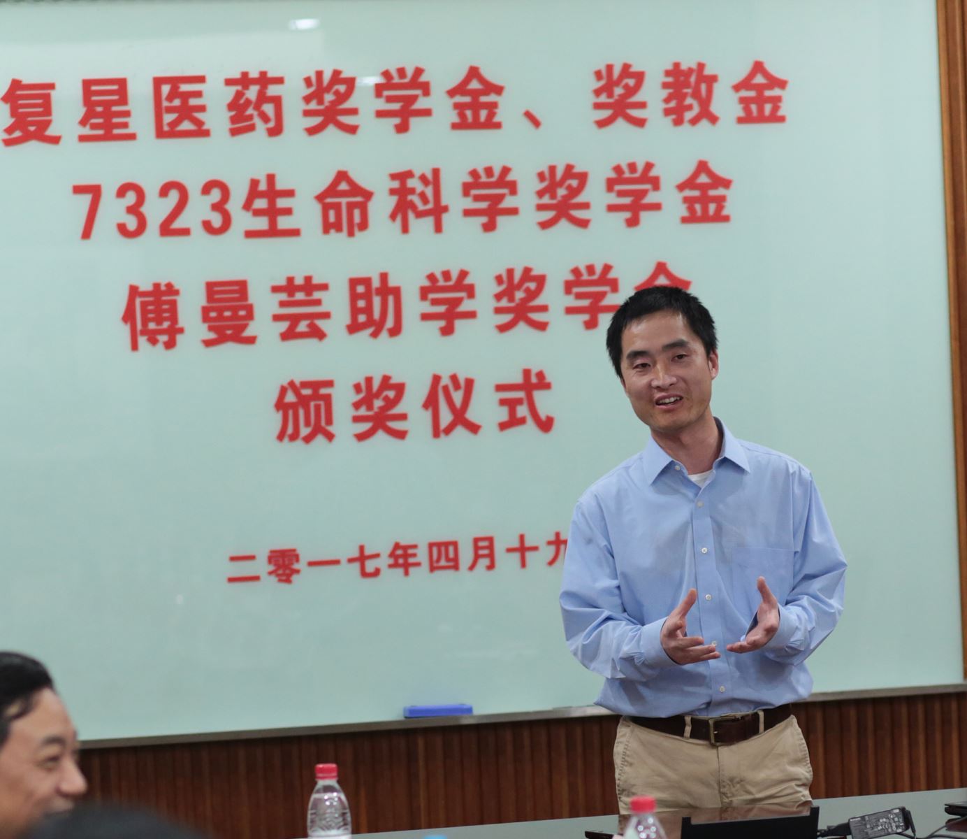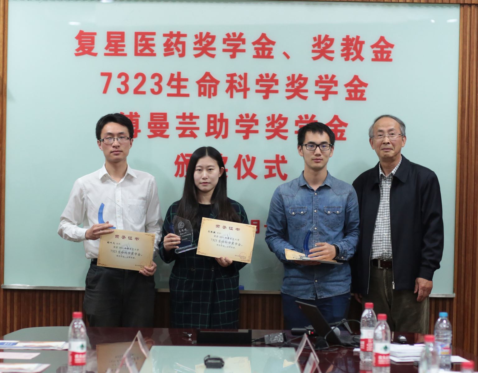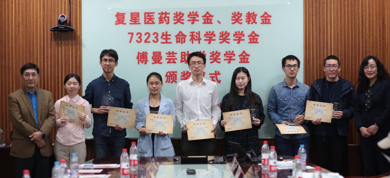 2017年4月19日下午,bv伟德国际体育在A208会议室举行了复星医药奖教金、奖学金,7323生命科学奖学金,傅曼芸助学奖学金的联合颁奖典礼。出席会议的有复星医药党委书记范邦翰先生,复星凯特生物科技有限公司CEO王立群先生,复旦大学教育发展基金会副秘书长、外联处副处长刘莉老师,7323生命科学奖学金理事会代表严维耀老师,谈家桢基金会理事长、上海海洋大学副教授谈向东老师,党委书记陈浩明老师、党委副书记蒋蕾老师以及获奖师生。典礼由陈浩明书记主持。