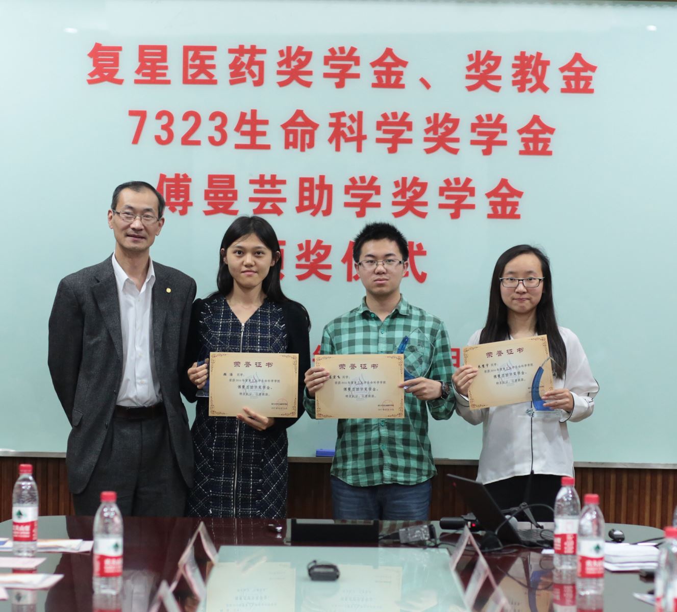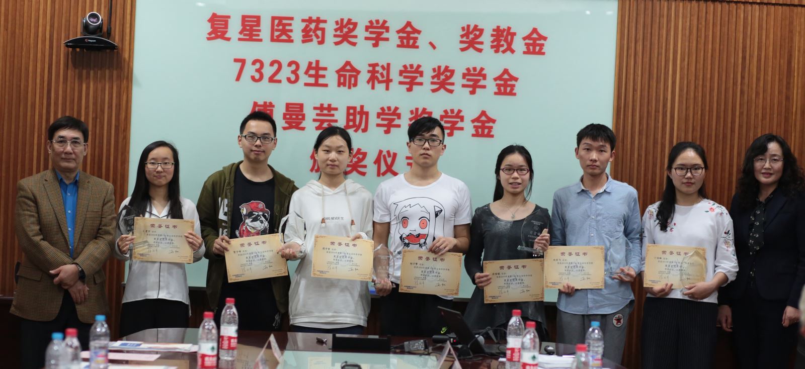 在阵阵掌声中,陈浩明书记宣读了获奖师生名单。范邦翰书记、刘莉副处长为复星医药奖教金、奖学金获奖师生颁奖,严维耀老师为7323生命科学奖学金获奖学生颁奖,谈向东老师为傅曼芸助学奖学金获奖学生颁奖。