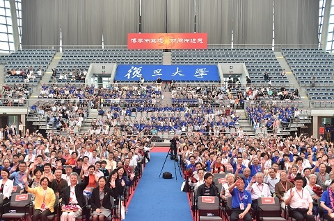 9月28日下午,“时代成就人生”复旦大学77-78级校友返校主题大会在正大体育馆隆重举行。复旦大学校长、复旦大学校友会会长许宁生出席大会并致欢迎辞。全国政协委员、西藏自治区政协副主席阿沛·晋源,科技部原副部长曹健林,国际货币基金组织原副总裁朱民,复旦大学原常务副校长陈晓漫,复旦大学原副校长冯晓源等77-78级返校校友与在校师生逾千人济济一堂,共襄盛会。复旦大学原常务副校长、复旦大学校友会副会长张一华主持大会,复旦大学党委副书记许征及有关部处和院系负责人出席大会。