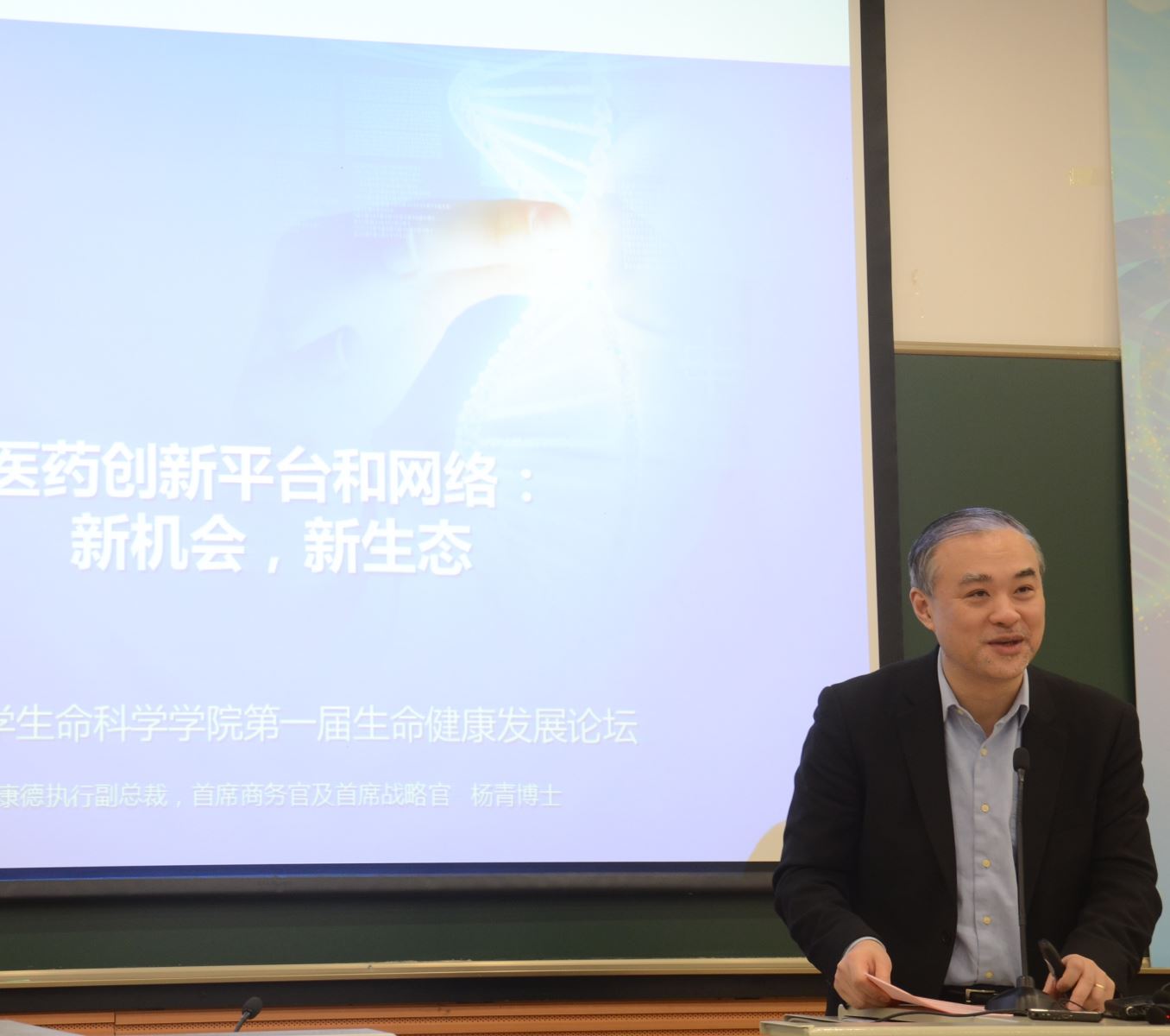杨青校友在演讲中指出基因组学的研究、人工智能的发展、大数据爆炸性的增长、精准医学的深入都对疾病的研究与新药的研发提供更多的可能性。在交流环节,杨青校友指出中国医药行业成长趋势喜人,有广大的市场和未满足的医疗需要,中国在许多行业呈现跳跃式发展。尽管与西方发达国家相比,在医药研发创新领域尚有不少差距, 中国的创新者,科学家,企业家,和投资人有机会摸索走出中国特色的道路。