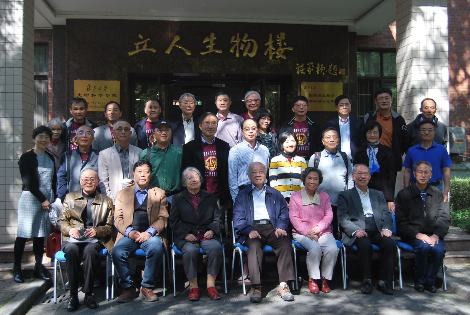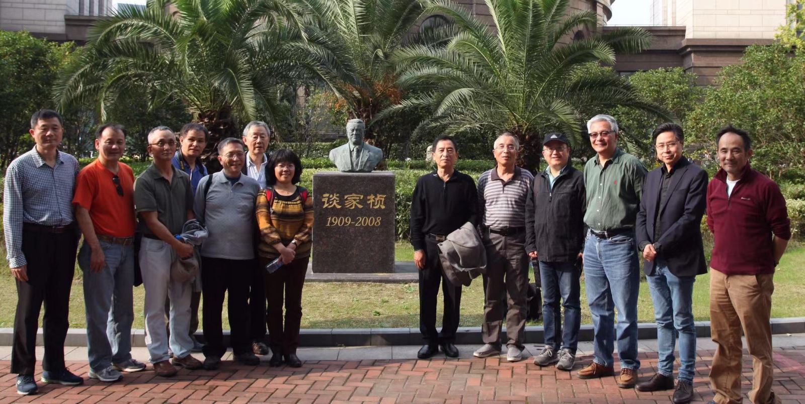参观完国重实验室后,校友们在曾经的恩师——谈家桢先生纪念铜像和生命科学学院大楼前留下珍贵的合影。