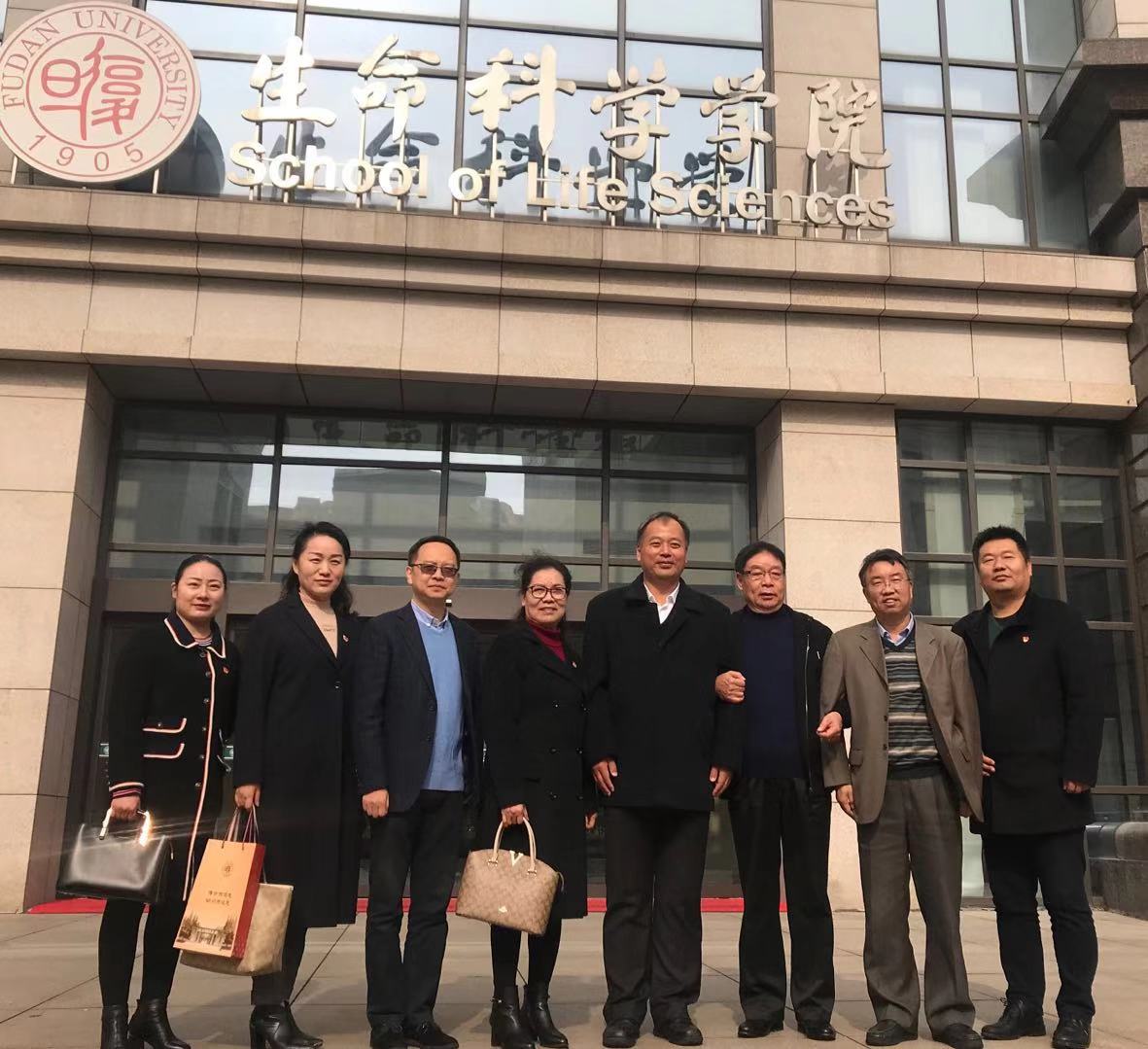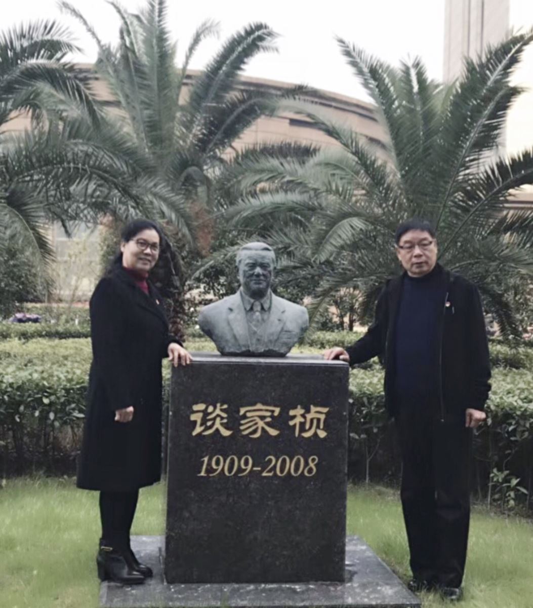 参观完国重实验室后,徐邦杰董事长一行在谈家桢先生纪念铜像和生命科学学院大楼前留下珍贵的合影。