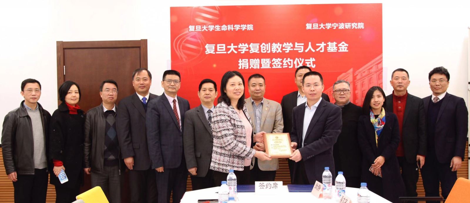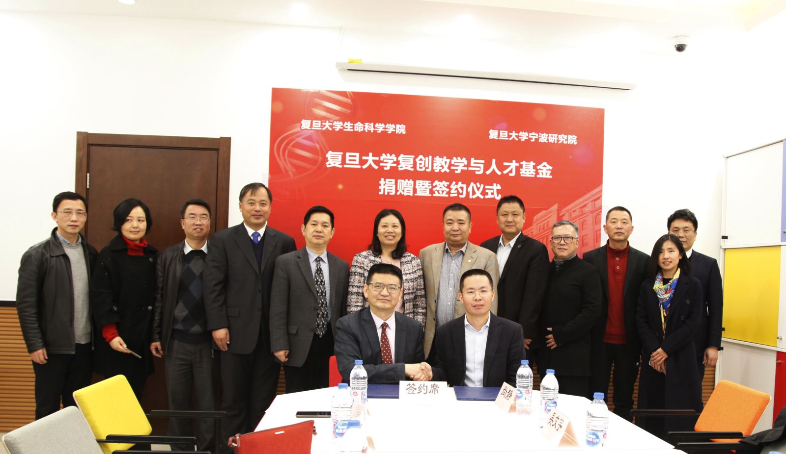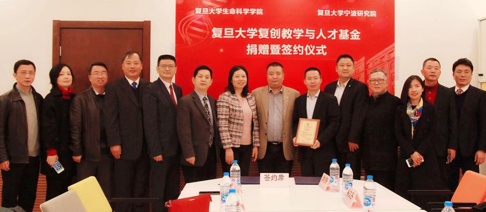 在孙院长看来,研究院取得的这些成绩,是源于学校领导和各部门的支持,“复旦”的招牌,⼴大⽼师、同学尤其是校友们的鼎⼒参与。因此,在宁波研究院快速发展的同时,始终在思考如何利用研究院自身优势服务和助力学校发展。从2013年年以来,除在推动学校科技成果产业化和促进学校与地⽅产学研合作等工作外,还积极参与学校各个⽅面的工作,包括推动成⽴宁波复旦校友会、捐资研究生辅导员培养项⽬、参与设⽴中⼭医院创新中⼼、设⽴复旦附属学校教师成⻓基金、参与研究⽣社会实践基地建立等一系列工作。孙院长表示,这次在⽣命科学学院捐赠设⽴复创教学与⼈才基金正是抱着服务学校发展,助⼒学校发展的初⼼,希冀为生命科学学院的发展与建设尽一份绵薄之力。